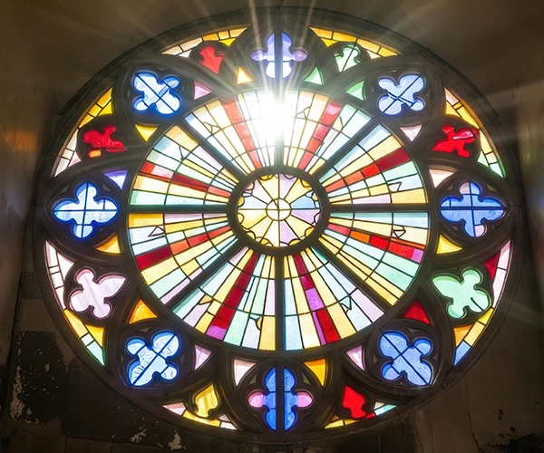 Le parcours du soleil à travers les verrières rythme la journée et illumine les autels selon l’heure.